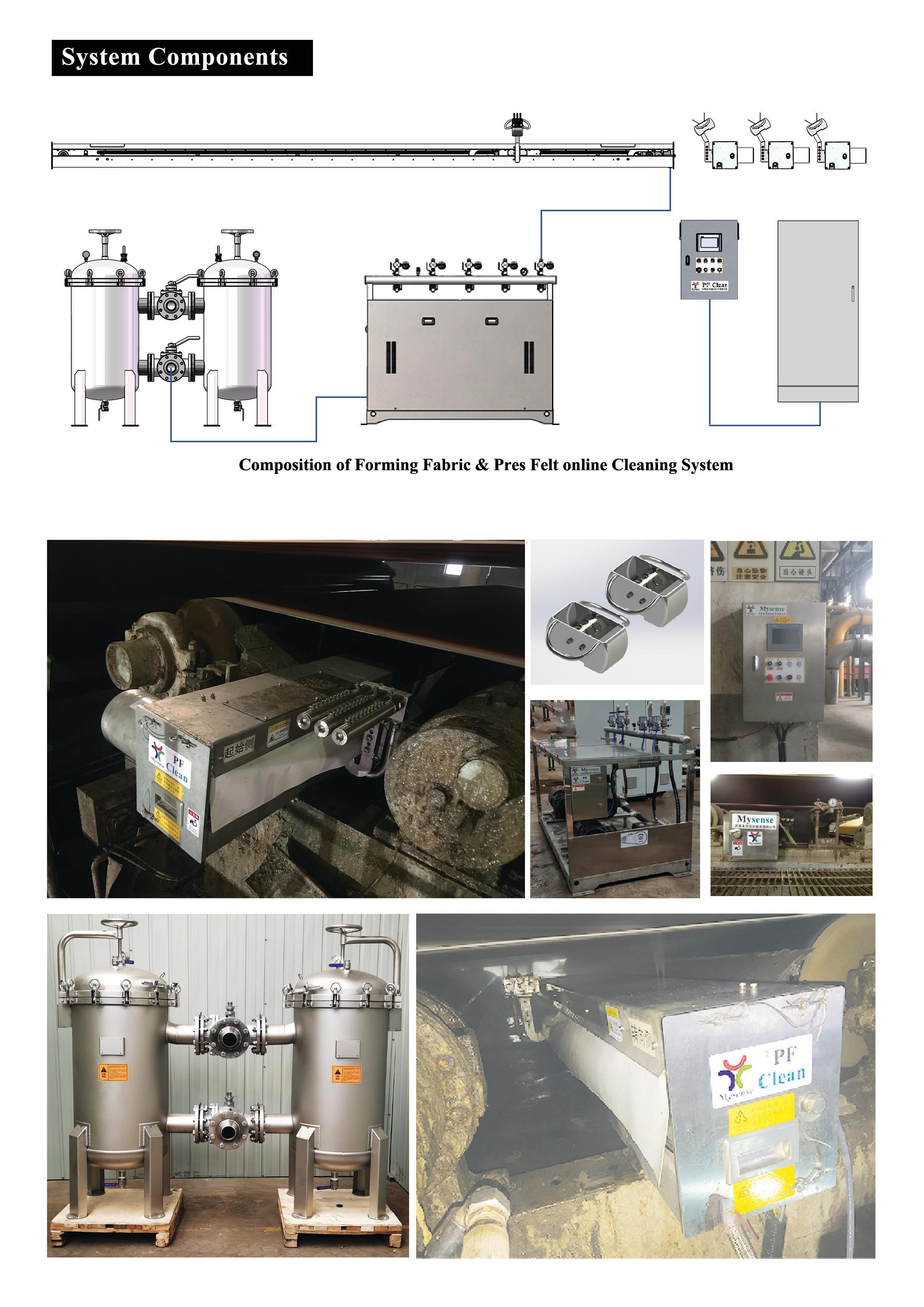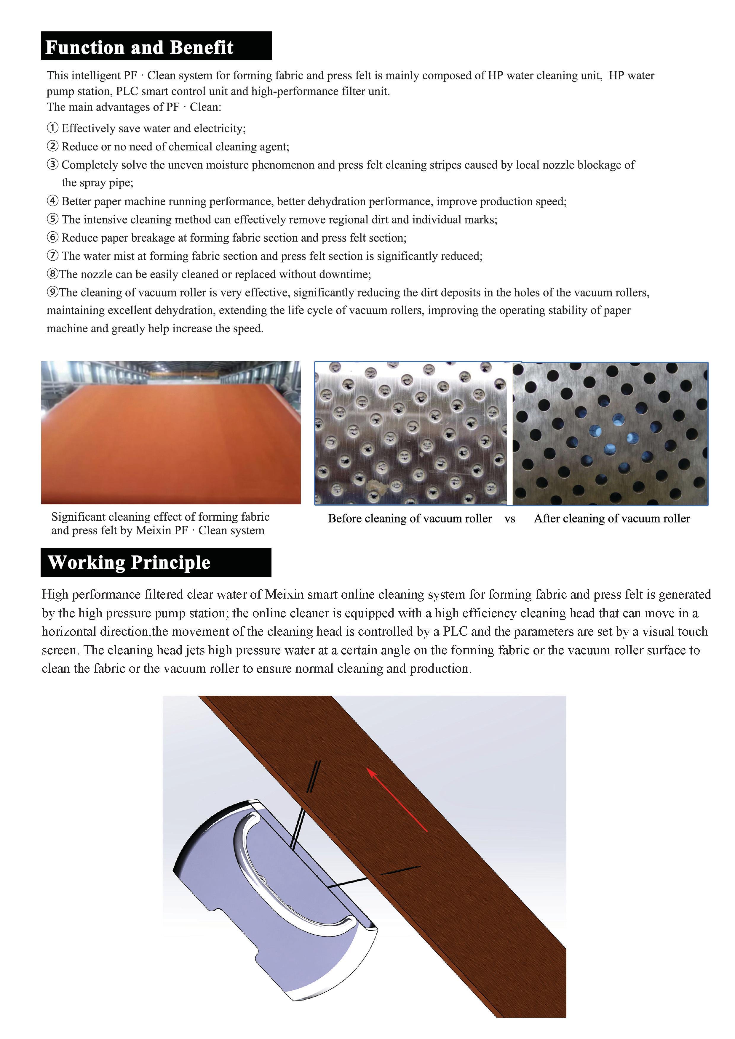 PF · Clean smart wet fabrics online cleaning system is mainly composed of high-pressure water cleaning unit, HP water pump station, PLC smart control unit, and high-performance filter unit.