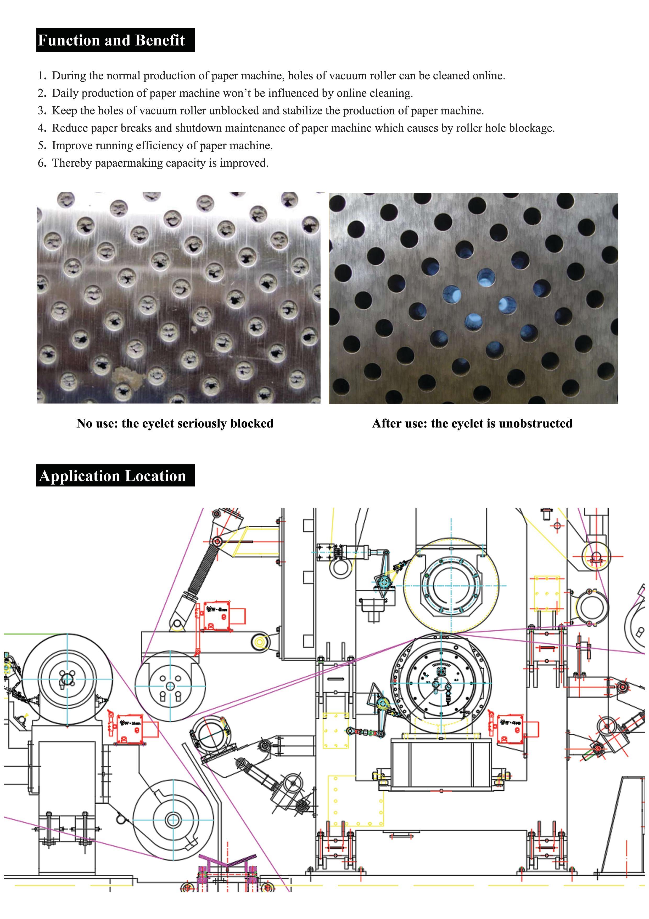 4. Reduce paper breaking and shutdown maintenance of the paper machine which is caused by the hole blockage of the vacuum roller;